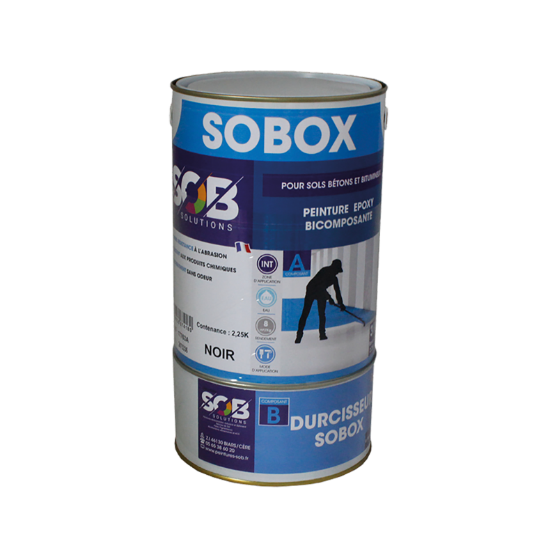 Peintures Epoxy bi-composant en phase aqueuse pour sol béton à usage industriel.