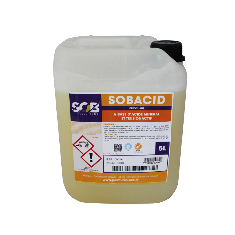 Dérochant acide pour préparation des sol et métaux avant mise en peinture.